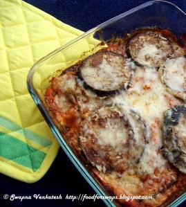 Aubergines/ Eggplants are not the co-resident’s favorite vegetable. Forget favorite, it does not even feature in an “I like” list. So when I suggested I was going to make Aubergine Parmesana, the response was a turned up nose and a resigned sigh. Not an encouraging start! When I started frying the aubergine, there was a grunt of approval and finally when the dish popped out of the oven, he ate more than me. So I’ve copied this recipe to help you convert others, after all who can hate a vegetable which is the color of royalty – purple!