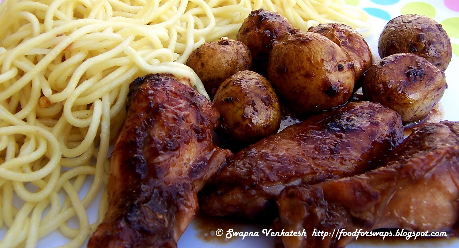 This is the first Asian style dish that I have posted online. Shall we say in honor of the Year of the Metal Tiger, which starts in the month of February. The year of the Tiger is supposed to bring in dramatic changes but a lot can be accomplished if we are resilient. But enough of the astrology advice…this recipe actually doesn’t require much resilience. It’s very accommodating …gives you enough time to watch an episode on the telly while it cooks away contentedly. I use chicken thighs which have a darker meat which is much more flavorful and suited for this recipe. Also I leave the skin on, which results in a crispy outside but moist inside meat. The co-resident’s not much of a fan of honey in savory dishes, but I love the caramelly glaze and the sweet, pungent and tangy combination.. Drool drool!