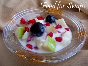 South Indian festivals are an excuse to indulge in food of the sweet and heavy kind. One of the staples is ‘Panchamrutam’ which means the five nectars. This is prepared as a festive offering and is a medley of all things sweet! It’s a sugar high to say the least and considering this is what we offer our Gods they must be getting off on the sugar buzz! Anyway there are no fixed five ingredients though Milk, Curd, Honey, Ghee, Fruits (esp bananas), Coconut and Sugar are interchangeable. My recipe is almost a fruit salad, but with a holy twist! Bless you…
