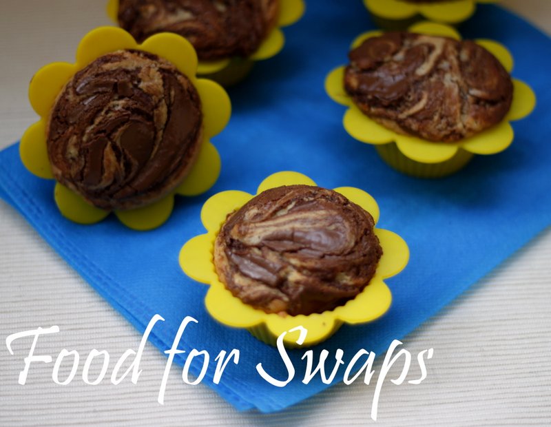 Divide the batter between 12 paper-lined muffin cups. Drop a spoonful of Nutella on top of each, and swirl through the batter with the tip of a bamboo skewer, knife or other pointy object. Bake for 25-30 minutes, or until springy to the touch. Tilt them in the pan to help them cool. Makes a dozen cupcakes.