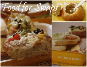They have fresh juices that you can pull out of a dispenser, Salads, a dessert and beverage bar, a soup section, the main course counter and finally the freshly baked goods section (my fav!). So I hobbled across with hubby and we picked up a veritable (questionable) combination of eateries! The Litchi iced tea for me and the apple juice for him. The apple juice was good and seemed au naturale, though I know the litchi ice tea had enough sugar in it to give you a nice afternoon buzz. I also picked up a soup – Tuscan Chicken and veggie. I only did this cause I am a sucker for what they serve it in – a bread bowl! Thankfully someone told me to take the soup in a sensible paper cup and just before eating, to fill up the bread bowl. Excellent advice, considering the amount of time I took in making the rest of my selections, the soup would have definitely either a. got absorbed in the bread or b. breached the bowl wall and made its way down my shirt! I would advise you to try it once. Just for fun!