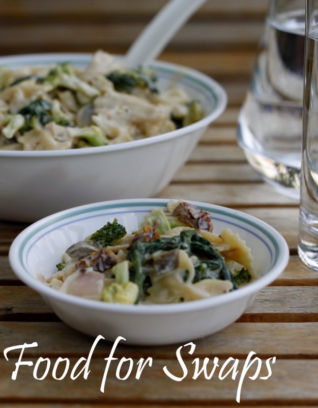 Pasta Primavera was the classic 70’s dish. Apparently invented in a French restaurant in New York City, it was the popular high style dish that you indulged in, when you ate out. Indulged in because, it’s a host of veggies but doused in butter, cream and cheese. Of course that got my attention and now it is one of my favorite veggie pasta versions. The sauce is almost a smackdown copy of the Alfredo but the treatment is a little different with the addition of cornstarch and stock. Since it’s got cream, I would suggest making the sauce just before serving as reheating tends to make the cream go all watery. The original dish uses French beans, peas and asparagus. I din’t have any of that at home, but mushrooms, spinach and broccoli sounded way good. To zing it up, I added sun dried tomatoes and jalapenos, trust me this is the only way I’m going to me making it henceforth! The colors and textures were just beautiful to look at and amazing to eat. I know why it was called the high style dish! The co-resident and me ate for four…at one go!