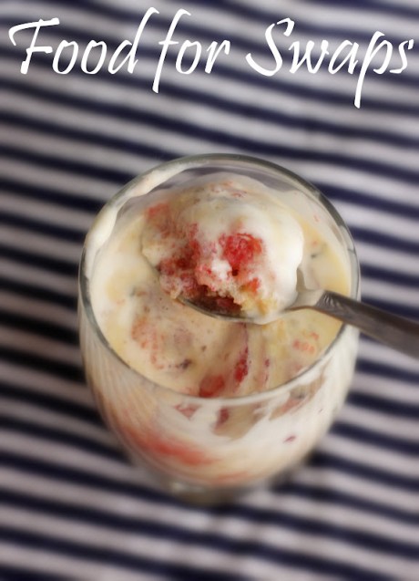 Sponge cakes are so called because they are as fluffy as a sea sponge. The air incorporated into the batter lifts the cake to make it light and irresistible. Since it is used as a base for many other desserts it’s one of the first cake recipes that I wrote down in my little black book of Baking! (Yes, I have one – though the color is more navy blue than black). There are many variations to turn out a perfect sponge. I use the method which involves creaming the eggs and sugar and adding the melted fat in the end. Some people use oil instead of butter, but I always think butter makes everything better, so you know my leanings! You can eat the sponge cake like a Victorian Sandwich – jam and whipped double cream or use it for a rolled cake like a Swiss Roll. (The flexibility of a sponge cake allows us to roll it without breaking). I have used it as a base for the popular English Trifle. Now the Trifle is nothing but a combination of layers of cake, custard, fruit and cream. But it is an impressive looking dessert to turn out! I use ready mix custard and jelly which saves me time. You can also go ahead and use a ready cake as the base of the trifle. (I won’t tell anyone!) But it’s so cost effective and easy to make at home, that I desist buying some from the bakery. Once you have all the ingredients, a trifle pudding is just assembly – though you have to wait a trifle between steps. Like George Savile said, “A man who is a master of Patience is a master of everything else”. (I don’t think he had a wife…’master of everything else’ ….hmph!) J