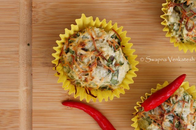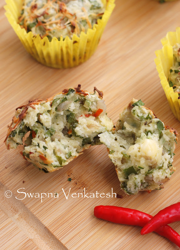 Line the muffin tin with butter paper or muffin liners to remove the muffins easily. Divide the batter into twelve medium muffins. (the batter in the muffin tin will look all gnarly but will smoothen out once baked). Sprinkle the remaining grated cheese on top. Bake for 30 minutes or till a skewer inserted in the center of the muffin comes out clean.