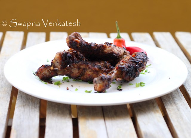 Jerk is a style of Jamaican cooking where the meat is generally dry rubbed or wet marinated with a very hot spice mixture called Jamaican Jerk spice (courtesy: Wiki). The inspiration for this, was the fact that I had a bottle of All-spice and the rest of the ingredient list (including Demerara sugar) available in my pantry. I know! Sometimes I surprise myself! So I proceeded to make the mixture and marinated the chicken overnight. I cooked it for lunch this afternoon and maybe was a bit overenthusiastic in charring the chicken. (Well, the recipe said 45 mins and I was loitering around!) Of course I’ve tweaked the cooking time down to 30 mins for you guys – the martyr that I am, taking the hit so that you can have a good recipe! It’s a good change from the regular tandoori or grilled chicken recipes. Enjoy it with some beer on a hot afternoon J