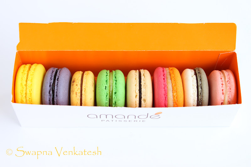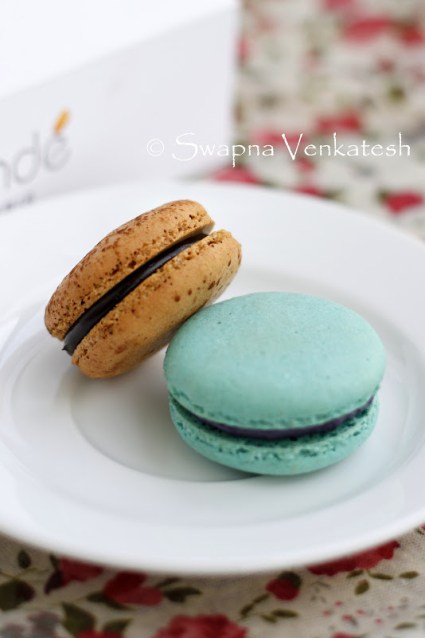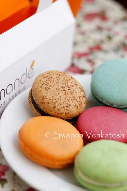 Before you read any further, I have a few things to profess. When I first came across Amande, I was just a happy customer. Being a click crazy person, of course I had to take pretty pictures of the Macarons and cry out to all and sundry on Facebook on how much I loved them. Owing to this evangelist behavior Amande’s customer list included people from my friend list as well! Amande’s owner was tickled pink that a few pictures could get him a larger fan following. (They don’t have a retail outlet yet..only home delivery by ordering online.) So he asked me to click a couple of more pictures for his website – to showcase new flavors. I happily obliged (which food photography obsessed geek wouldn’t?). So now that Amande is a photography client, (P.S. As of now, none of my pics are updated on the website yet. Will let you’ll know when they are) Would it be wrong of me to write about them? I did think of this for a long time and finally decided – I love their macarons irrespective of shooting for them and it would be a great disservice to you guys if I didn’t talk about it here. Besides, if I’m telling you upfront about the circumstances, so I’m sure you guys would understand. (P.S. I got paid in kind in Macarons and wine, so that lessens the promotional angle :P)