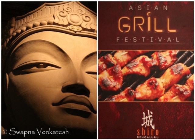 UB City has become one of my favorite places to hang out. The open air cafés and restaurants, the dancing fountain, the easy relaxed pace in the evening under the stars – I always feel like I’m out of Bangalore. Sunday brunches at Shiro – the pan Asian restaurant, is an indulgence that I often dip into. The Zen like ambience with the giant statues and the serene Buddha never fail to get me into a happy and peaceful mood. So when Shiro invited me to their Asian Grill Festival, I was more than happy to pay them a visit. Bangalore winters have started, so we chose a table inside right next to the Buddha. I was feeling good already!