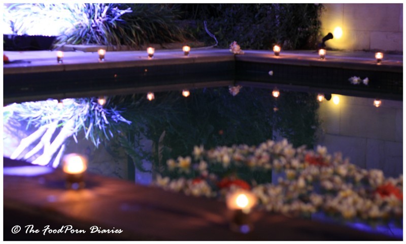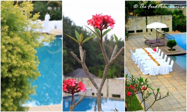 We rounded off the tour at the helipad, where high tea was arranged for us. For those of us who din’t want to walk all the way up to the Odessy restaurant (where a Chocolate making Demo was to happen) – a yellow golf buggy was sent to fetch us. I walked up the path – I needed to burn off the calories from lunch and tea. As I rounded the corner, I saw an exquisite table being laid out for dinner by the pool. Flowers, candles, crystal and china – someone’s going to have a wonderful night!