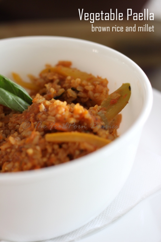 The Paella was made out of brown rice and millet cooked with roasted vegetables in the tomato sauce (the same one I tell ya!). Did I like it? Mmm…maybe If I didn’t have the Bolognese. It was all tasting similar to me now. So I let evil one finish this.