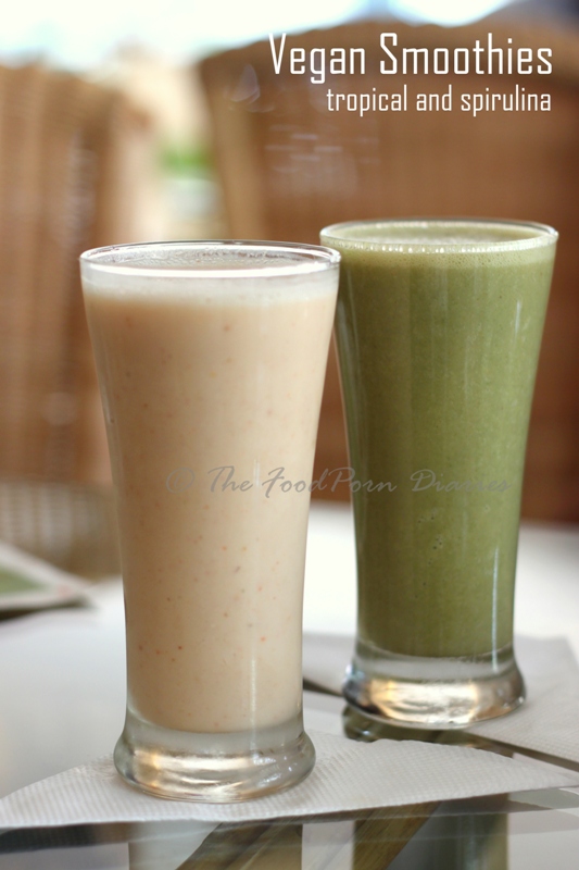 Smoothies were going to be tricky. You either use milk, yoghurt or ice cream to make a smoothie. A vegan can’t have dairy – so what was it going to be made of? Necessity is the mother of invention and so, there was a choice of soy milk, almond milk or cashew milk. We went with soy milk. The Tropical smoothie tasted like any other smoothie but the spirulina one was all vegetal. However, evil one is a fan of spirulina, so he lapped it up.