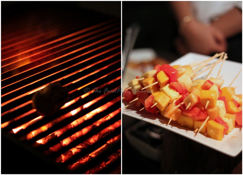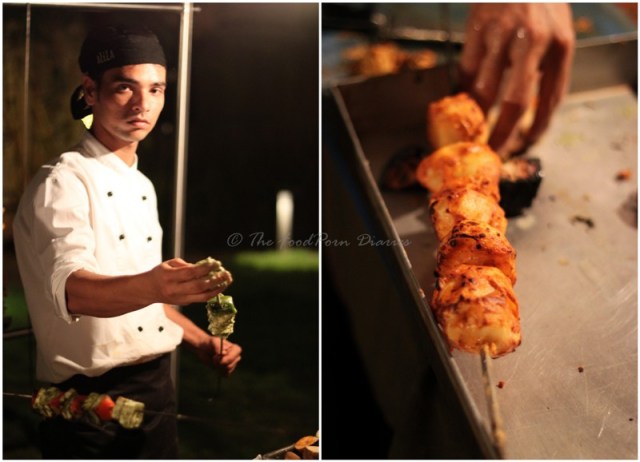 The last of the table guests arrived exactly one hour after I did and by that time, I was tipsy and ravenously hungry. The hotel used their café and garden area to set up the grilling stations. Five grilling stations with different menus were raring to cater to the crowd. (There were quite a few Whitefielders who had already warmed up to the idea of an evening bbq!) If I remember correctly there was a Vegetarian station, Western Char Grill Station, Arabic Grill Station, Indian Grills and a Grilled dessert section.