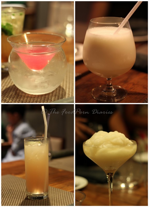 The table members trickled in one by one (I came in a proud second – working in Whitefield has one advantage!) and the usual greeting shenanigans began. Rounds of drinks were ordered – Pomegranate Martinis (which came in a funky double glass), Cardamom Lemonades, Pineapple Mojitos, Peach Daiquiris, Pina Coladas and Strawberry and Chilli Martinis. Not all the cocktails were up to the mark with respect to the flavor balance, but the peach daiquiri and the pina colada were fabulous. The strawberry and chilli concoction had the right amount of sweet, tart and spice to make your palate sing. My pineapple mojito hit the nail on the head but some others were not too lucky. (I would suggest using canned pineapple chunks to avoid having to ungraciously pull out the pith from your mouth!)
