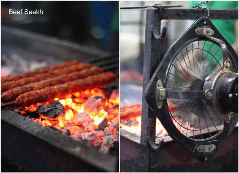 The Beef Seekh at Kebabish is always to die for. And the owner knows it! When I was clicking pictures of his stall – he smiled and told me to check the newspaper that day. Apparently he was featured in it! So without further ado we waited for him to grace us and hand over a plate of the best tasting seekh in Bangalore. Maybe the secret is the table fan that he uses to fan the coals – A nifty trick! My husband will be mighty pleased that his idea is being implemented on a larger scale (He uses a blow dryer to air the coals when we have barbeque parties!).
