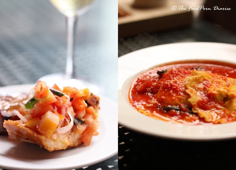 We were served a very elegant puff pastry with a dip as soon as our drinks arrived. The café calls it their most famous bread. Sprinkled with sesame seeds it makes for a nice crunchy start but I don’t see what the fuss is all about. The platter of open faced sandwiches on different breads was on the dot and the Smoked Salmon and cream cheese one was my favorite. Chef Alfonso from the Alto Vino arrived with some freshly made Bruschetta and it’s hard to say no to his charming ways. The Bruschetta was fantastic, fresh and bursting with flavors. Simple ingredients that come together to tantalize your tastebuds. Alto Vino was trying to popularize true blue Italian home style cooking – if the proof is in the pudding, the bruschetta makes for a very strong spokesperson. We were served a lovely Pumpkin Ravioli later in day and it was again an ode to simple cooking.