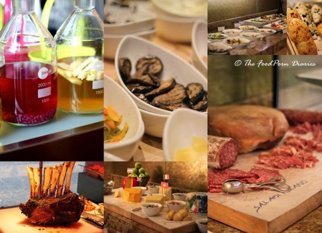 The FoodPorn Diaries dictionary (yes, it exists…if only in my mind!) defines ‘Brunch’ as nothing but copious amounts of Booze + Lunch, generally consumed on a Sunday, to arm yourself for the travesty of work on a Monday. Since most of us run the corporate rat race during the week, (which gives us just enough time to drag ourselves to bed every night), what better way to spend a weekend afternoon than by overcompensating? I generally don’t bother reviewing brunches because, let’s face it – everyone has the same offerings. Indian, Chinese and European cuisine served with loads of alcohol and bubbly, edging you to consume in one afternoon what you probably should be eating over a span of a week! But since so many of us are in the quest for the holy grail of Sunday Brunches, I decided to take a dive and do it for you. Starting with the brunch at M Café in the Mariott, Whitefield.