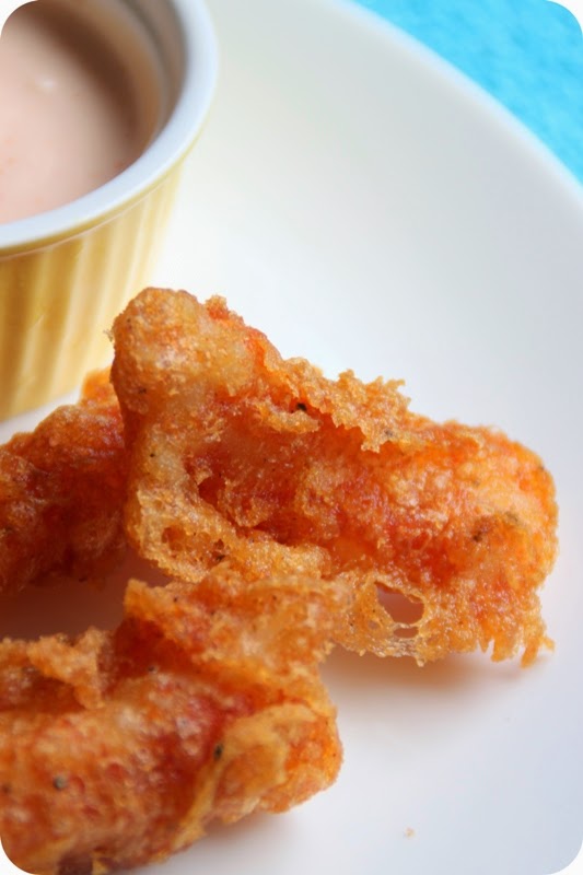 Chemistry was an exciting subject in school – at least the part that required us to don lab coats and act like scientists. No matter that the only thing we were actually allowed to do, is heat some substances (washing soda/ copper sulphate) and note down the properties. I don’t want to give you the spiel about how recreating a recipe is nothing but chemistry, but in this case it’s true. I was supposed to use carbonated water or soda, in combination with soda bicarbonate powder to get the desired ‘fizziness’ to make the batter light and crispy. It’s anticlimactic that the actual reaction was nowhere near the explosion that I expected, but more of a tame bubble bath! But the end product was right as promised – crisp, light and almost see-through-lace like batter. Now that’s an experiment recipe worth repeating.