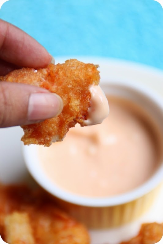Remove with a slotted spoon and drain on kitchen paper. Sprinkle with a little salt and serve hot with pink sauce (ketchup and mayo) or lemon aioli (garlic-lemon mayonnaise).