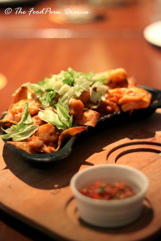 What is a pub without Chicken Wings right? Blimey has its own version – an insanely spicy Peri Peri sauce. The smokey and piquant flavors will keep you coming back for more, but be warned that you need gallons of the cold stuff to get you back to normal. The Cajun spiced Calamari rings were too spice-coated for my taste, though I imagine a majority of the Bangalore population liking it because of the exact reason. The highlight for me was the ‘Heaps of Nachos a la Fruite de Marie’. Being a seafood lover, you can only imagine my delight at find perfectly cooked prawns, fish and calamari tossed with baked beans, sour cream and nachos. The salsa on the side gave the perfect kick to the already fantastic dish. This is going on my reorder list.