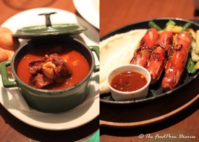 The Irish Lamb Stew was beautiful. Lamb shanks slow cooked with potatoes, celery, carrots and onions in a rich braising stock. I could easily picture this in some old pub in Ireland where the town’s residents congregated to watch a match and dug into their stew. Food does fuel the imagination! The Bangers and Mashwere bang on the buck. Three juicy Pork Sausages served with Onion gravy and mashed potatoes. On a day I’m nursing a hangover and want something to cure it – I’ll pick this one out of the lot.