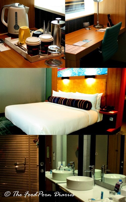 When it’s time to retire for the night, rest assured you have a luscious bed to sink into. After a quick shower (they have a rainfall shower) with Bliss Spa products, wrap yourself in the cozy bathrobe and make yourself some piping hot Aloft signature coffee. Get into bed and switch on the 42” LCD TV. After browsing a while, if you’d rather watch the last Game of Thrones episode you downloaded this week, just hook your laptop up to the plug-n-play docking station in the room and project the same on the TV. The station also charges all your electronic devices. Kaching! Why don’t you shoot a quick email to your boss using the free wifi in every room? It’s always good to let them know how hard you’re working 😉