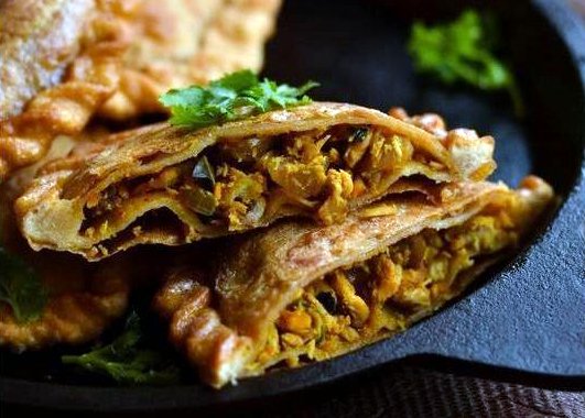 The Kannu Vecha Meen Pathiri is definitely something I’ve never seen before on a South Indian menu. Almost empanada like – It reminded me of the sweet version called Karanji that Maharashtrian’s make during Ganesha Pooja. However this non-veg version uses a spicy fish mixture to stuff the wheat parcels with! Tiger Prawns are always high on my seafood wish list. The Chemmeen Elavanthenga Ularithiyathu is a unique preparation that uses kodampuli (souring agent) while sautéing the tiger prawns with slivers of tender coconut. The delicate tender coconut meat adds a sweet element to the otherwise tangy dish. Finger-licking good …don’t be shy to do away with your knife and fork.