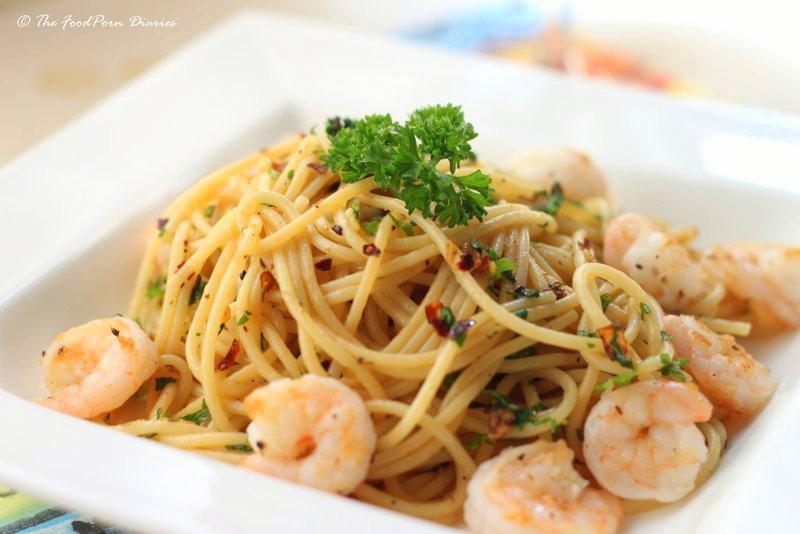 Now this seems like a simple enough plan until you add a 10 hour work day and get home dead tired. The easiest thing in this frame of mind would be order in or in the worst case scenario rip open a packet of maggi and be done with dinner! Which is why a Pasta Aglio Olio has such high regard in my scheme of larger things. It’s easy to put together, it tastes fabulous and I spend exactly 20 mins making it. It’s not a paragon of virtue, but it at least counters consuming 3000 calories in one meal outside. (ok, 1500 calories if you exclude the wine :P).