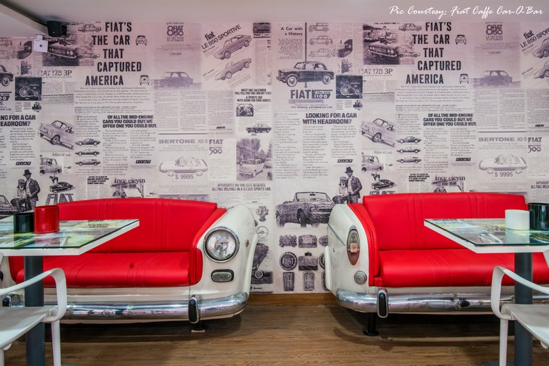 Fiat Caffe has been reinvented as Fiat Caffé-Car-O-Bar, which should tickle our Indian sensibilities. For all those who assume that Fiat Caffe is a cool looking car showroom – it is. But it also has another level which functions as a bar and café and the ground floor transforms into a space for performances and live gigs after dark. And if you want to dance the night away – they have a cool DJ console fashioned in the hood of a dismembered fiat! How’s that for sticking to the automobile theme?