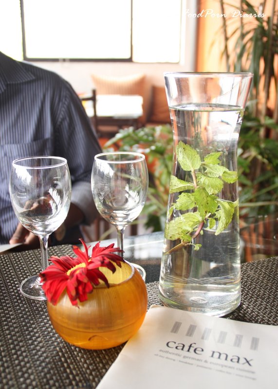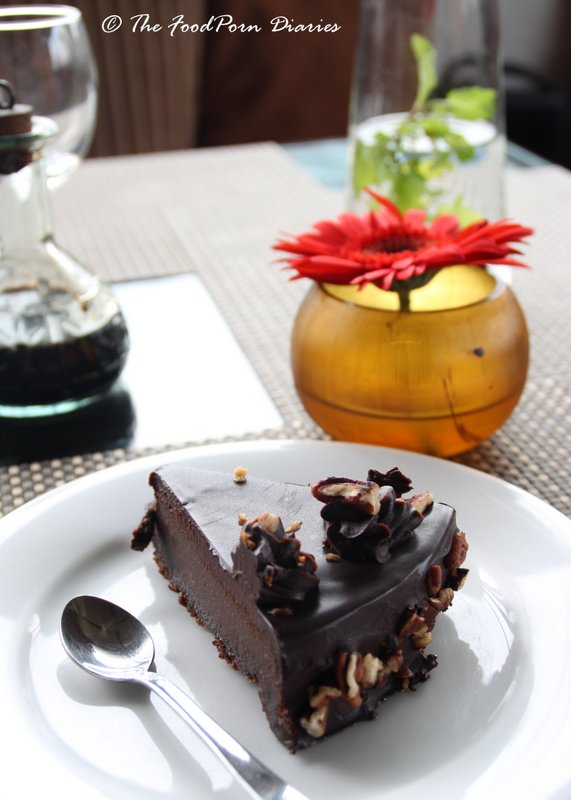 The desert display counter at Café Max is bang at the entrance and you have no choice but to steal a glance as you walk in. They have a fantastic selection of baked goodies that will leave you in a very difficult situation at the end of the meal. We finally chose the Chocolate Pecan Cake. I cannot do justice to how decadent it was. On a crisp and crumbly praline base, sat a fudge like cake coated with glossy ganache and finished with pecan bits. I want to go back there for a slice of this cake with a hot cup of coffee!
