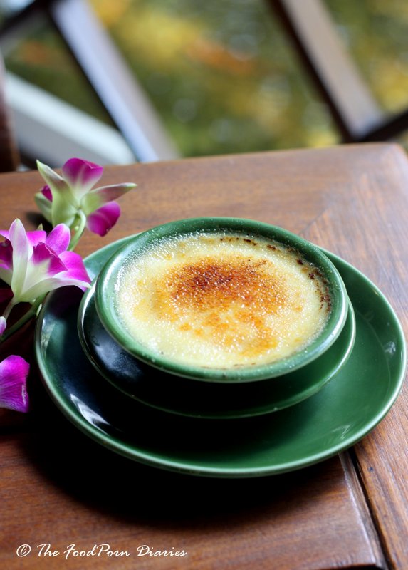 For main course you have a choice of Tofu, Fish or Roast Duck. This is served with Phad Pak ruam (vegetables tossed with soy and garlic) and Fried Rice. Now this is no ordinary Fried Rice. Chef Tham has boosted its desirability quotient by treating the fried rice to a unique spice paste. The result is mouthwateringly delicious. I ordered the Duck Red Curry and was blown away by how beautifully the duck was cooked. The fatty meat glistens in a fiery red curry made infinitely interesting with … red grapes! Creamy and decadent – this one is definitely an indulgence.
