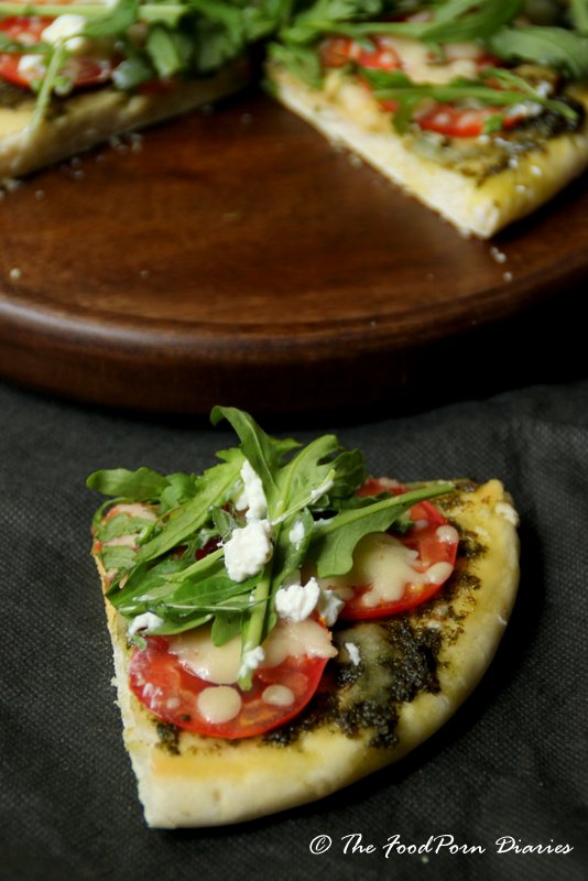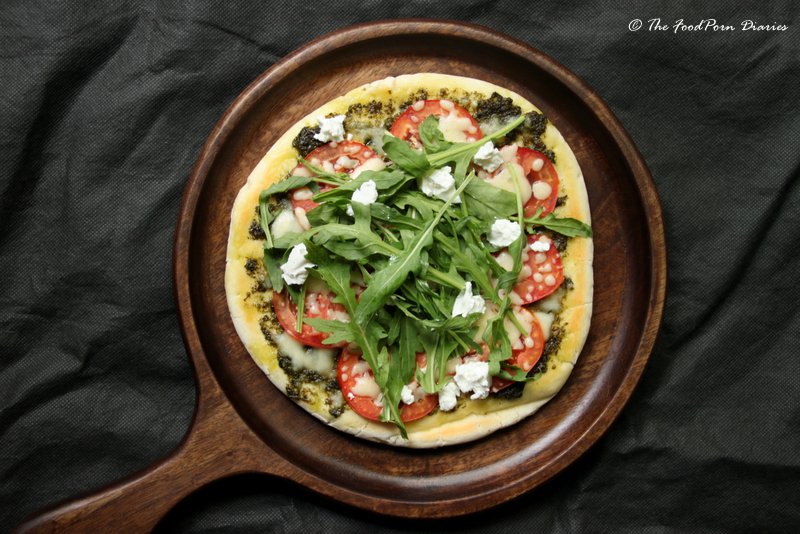 Now the question might arise as to why I want to bastardize a completely unhealthy indulgence like Pizza, with bunch of greens. Well, let’s just say I’m veering a bit towards the health wagon these days, having officially been chastised at the gym for being a slacker. I figured if I’m not going to be working out or exercising, I might as well pay attention to what goes into my mouth!