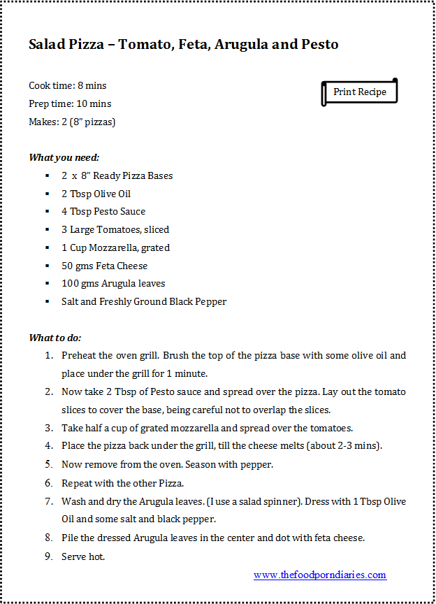 It’s an oxymoron, Salad Pizza. But seemingly disparate things do seem to find a place in my heart and my kitchen. I can’t really take credit for this pizza idea. I chanced across this in a darling little pizza joint that’s opened close to my house. (Review soon enough…). Tomatoes and Arugula on a Crisp Pizza base! With the recent bumper luck of arugula availability at my door step – it’s also super easy to make.