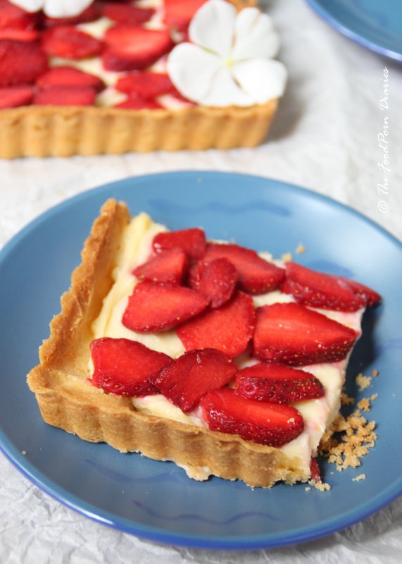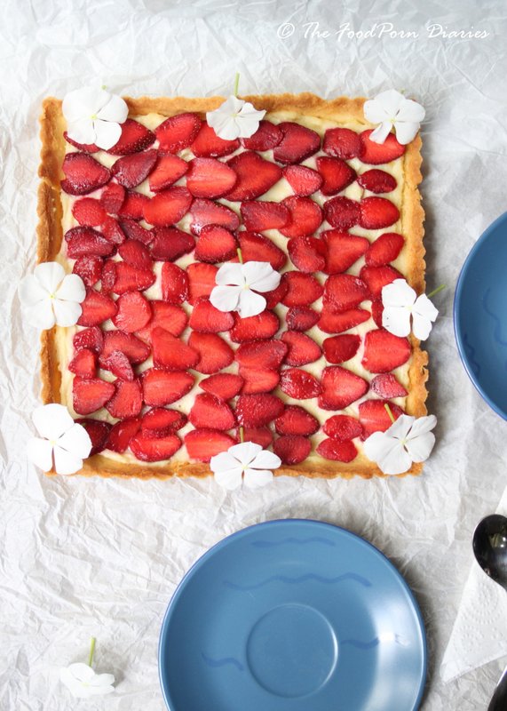 Strawberry season and not succumb to the luscious fruit? Not a chance. So as usual my fridge is stocked with box after box of strawberries this year. After umpteen strawberry shakes, smoothies, juices and eating the fruit dipped in chocolate (yes, that’s legit), I decided to incorporate it into a dessert. A Strawberry Tart seemed like the perfect way to enjoy the fruit without cooking it. (I’m all for jams and preserves with other fruit, but the strawberry is perfect as it is).
