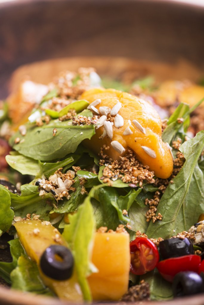 The mains have a choice for the Paleo protein lover and include Lean Tenderloin steak with Roasted Cauliflower, carrots and Sweet Potatoes. The Ras El Hanout grilled Chicken with Spicy Brown rice was a favourite at the table and I suspect that the spicy dressing did the trick. The Pan Seared Rawas came beautifully plated with kidney beans, chickpeas and corn. The Soy Milk and Bhavnagri Sauce offered a mild kick to the rawas. My only grouse – the rawas needed to be pan seared a bit longer to ensure the skin stayed crispy.
