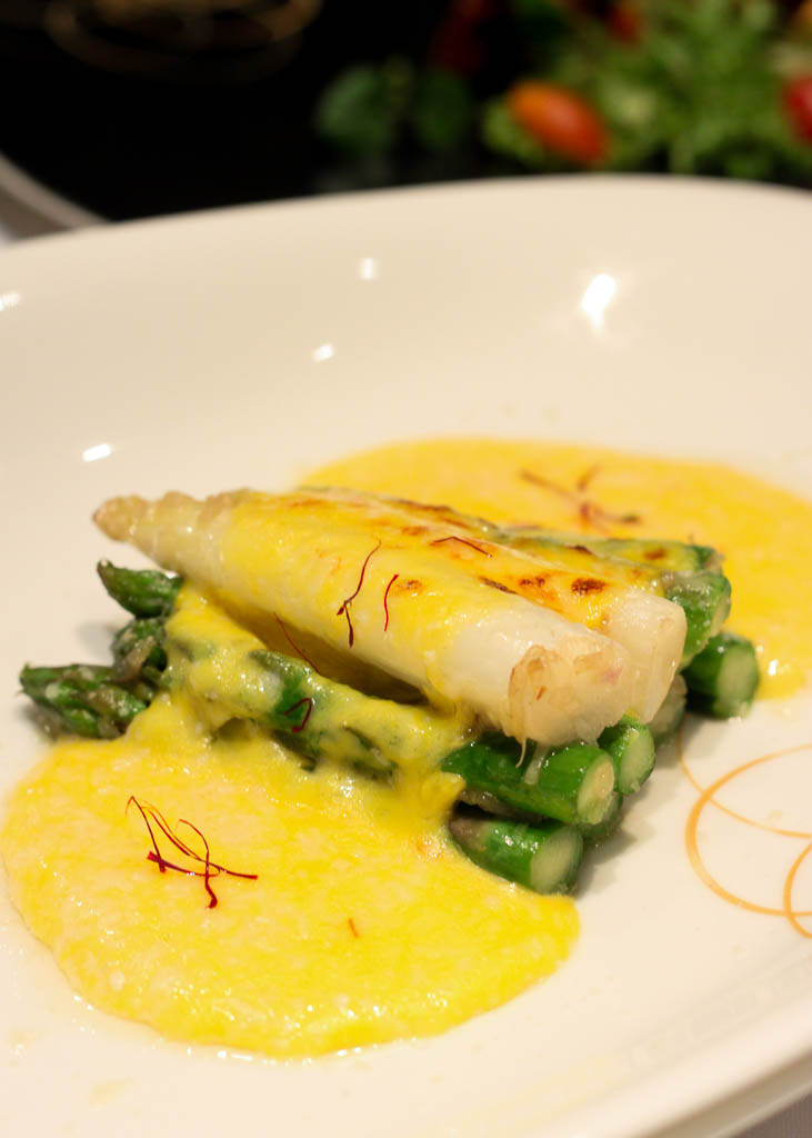 Conspicuous in its absence was an Asparagus Soup – but why resort to the obvious when Chef Sasha had dreamed up more interesting uses for the vegetable. The Tartara Asparagi, Pomodori secchi e burrata consisted of an Asparagus tartare that sat pretty on a bed of luscious Burrata and Sun-dried Tomatoes. Or the absolutely beautiful marriage of Asparagus, Saffron, Parmesan coulis and white truffle oil in the Asparagus gratinati alla Milanese. Now that I am exposed to this royal, elitist version of Asparagus with Hollandaise sauce – life will never be the same!