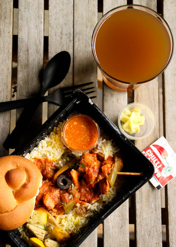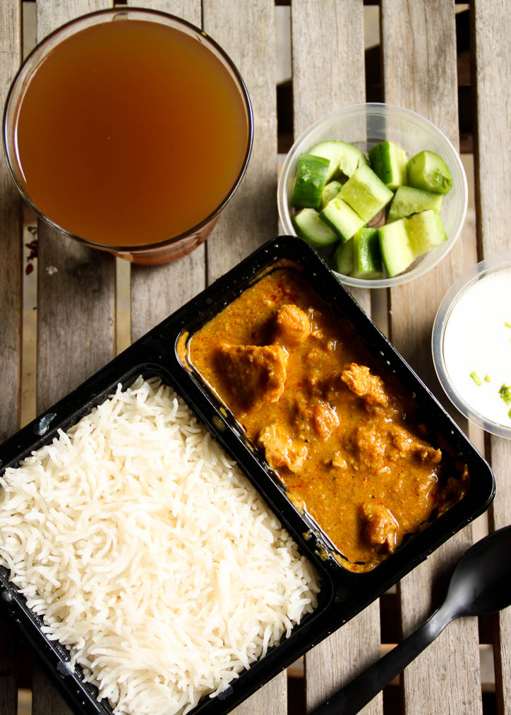 The Chicken Chettinad with Steamed Rice, Cucumbers and Yoghurt was all that it promised to be. Fiery, robust and downright delicious – I thoroughly enjoyed this one. Again, it cuts a sorry picture in the box, but when it tasted that good – I didn’t care.