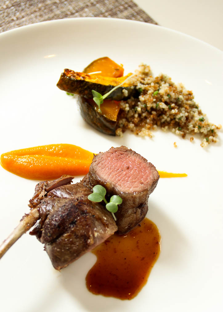 Our neighbours with the Lamb maincourse didn’t do too badly themselves. Pink, seared Lamb chops served with squash, carrot-miso puree, along with a crispy quinoa salad hit all the right notes.