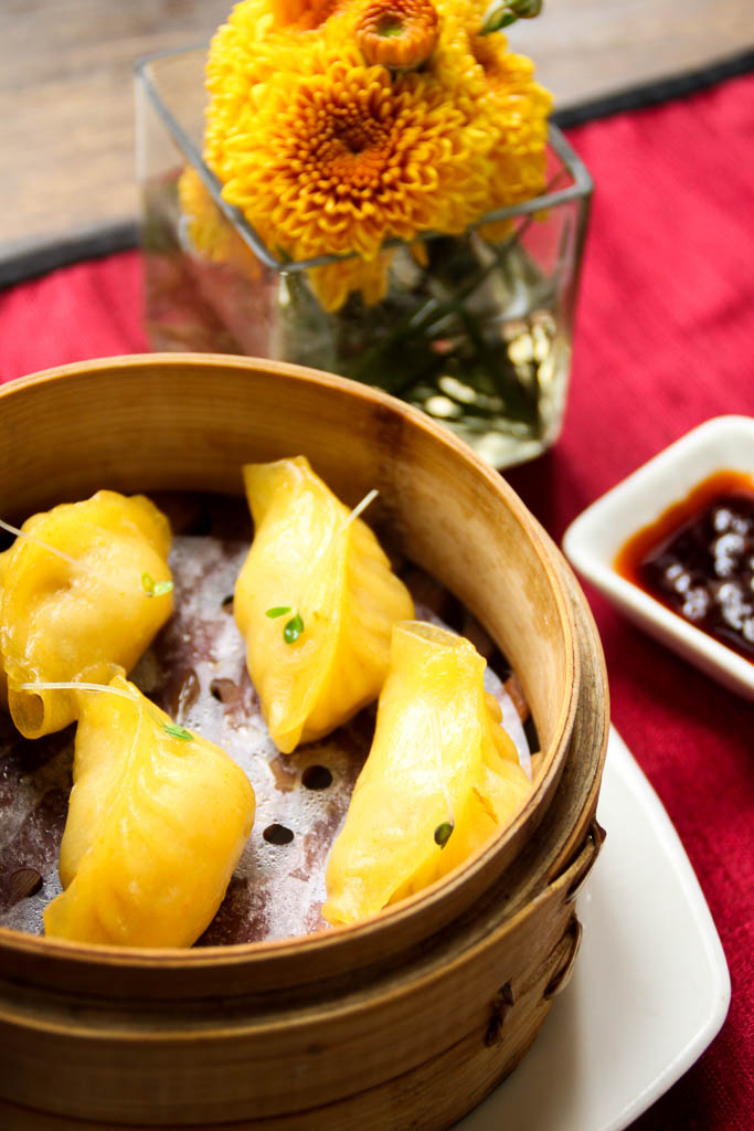 Someone finally put Cream cheese in a dumpling and it tuned out pretty darned well! The Mushroom and Cream Cheese Dumpling is an attractive sight to behold with its blushing rose-colored wrapper. The cream cheese adds a silky dimension to the moreish mushroom filling and the winner is the rich mixed mushroom and garlic broth that is poured over it. The competition for this exotic creation is the luxurious Lobster and Truffle Oil Dumpling. Even though the sublime smells might entice you – please resist the urge to pop the steaming yellow parcel instantly into your mouth. You not only risk burning your tongue but also risk losing all the beautiful flavors to just a sizzling medley in your mouth.