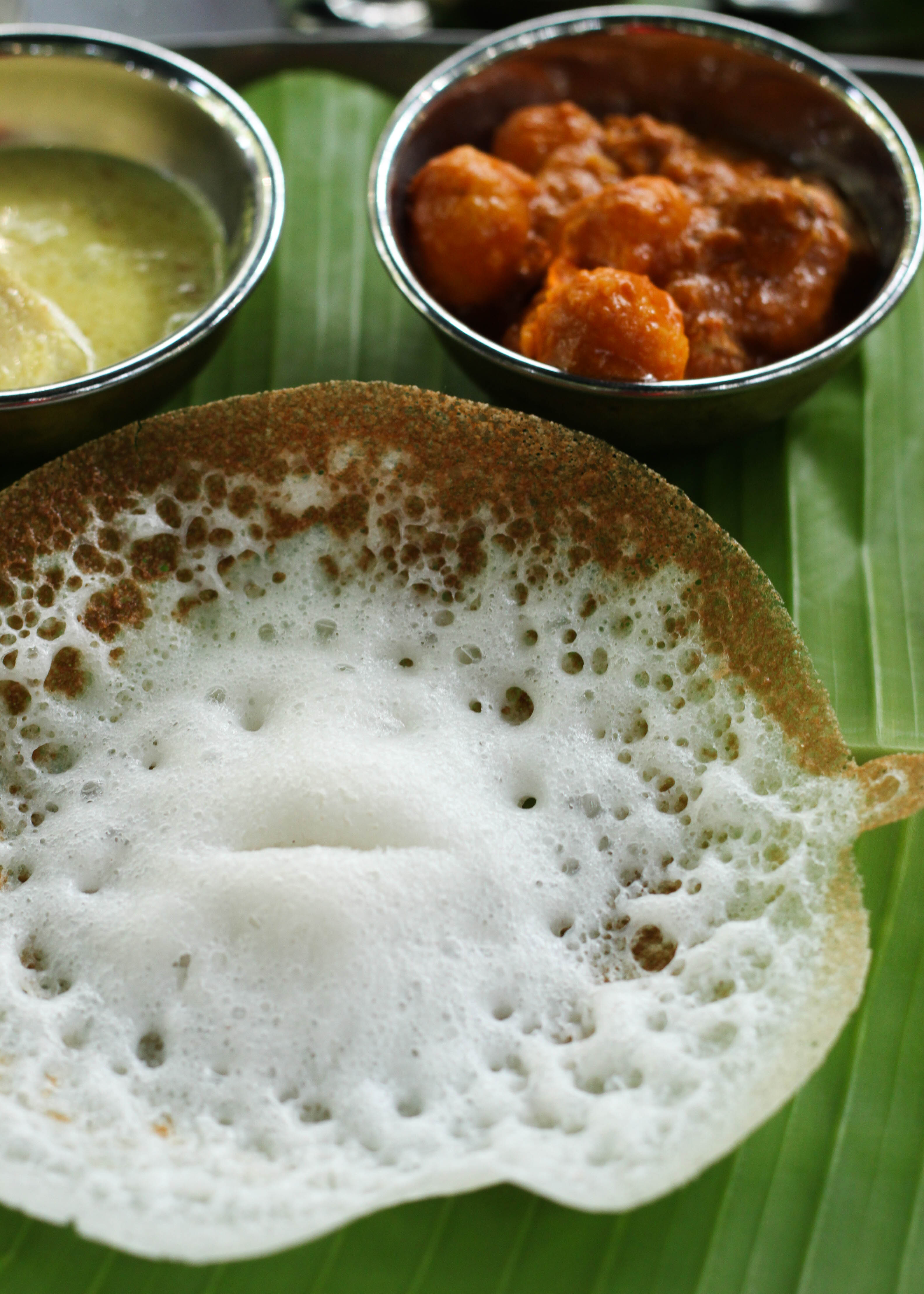 You can eat Appams, Malabar Parathas or Neer Dosas with your main course. The Meen Moiley is an all-time favourite and serves as a sweet respite from the fiery starters. Coconut milk curry with a mild hit of green chillies, curry leaves and turmeric serves as a perfect foil to freshly made appams. If you want to have a meal in one – the Marwai Pundi ticks all the right boxes. Clams are simmered with rice dumplings in a red chilli and coconut milk curry. Very moreish and very delicious.
