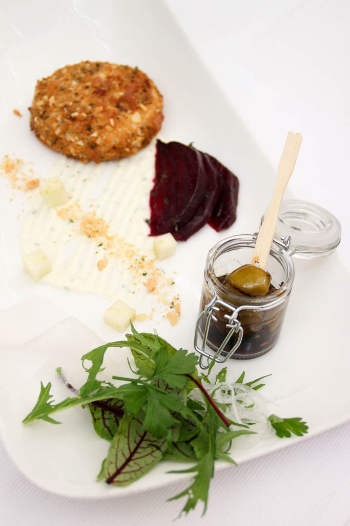 Another cheese appetizer that made heads turn was the Molten Brie with Pretzel Crusts. Now brie in itself is drool worthy, but the pretzel crust on this one was all kinds of beautiful. Served with sweet roasted beets and a wonderful green apple chutney flavoured with fennel, the final result is an explosion of flavours in your mouth. Another interesting element was the Sorrel leaves, that complemented the indulgent brie with their acidic tang.